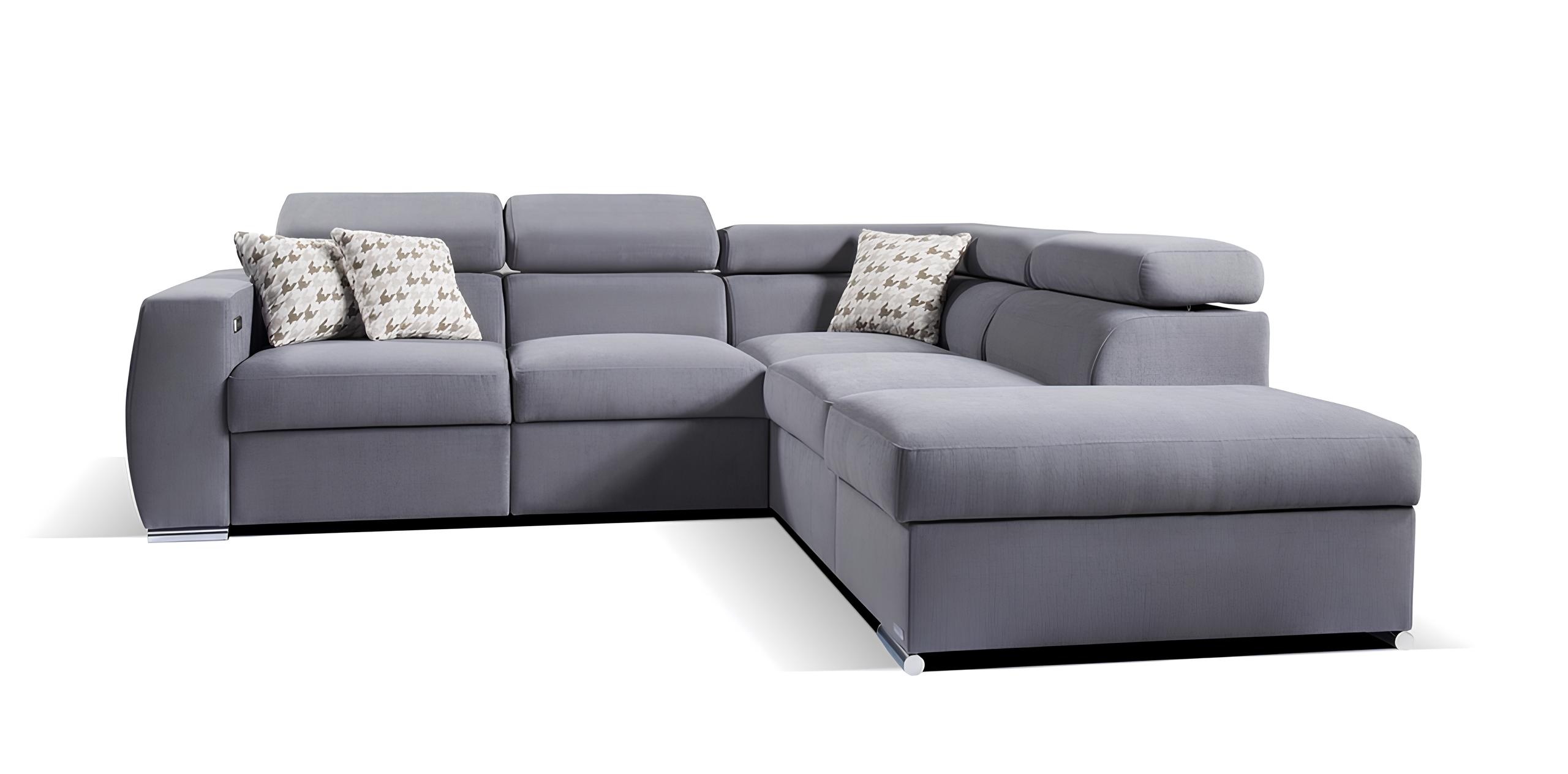 Divano angolare in tessuto a forma di L Design imbottito tessile angolare moderno relax automatico grigio