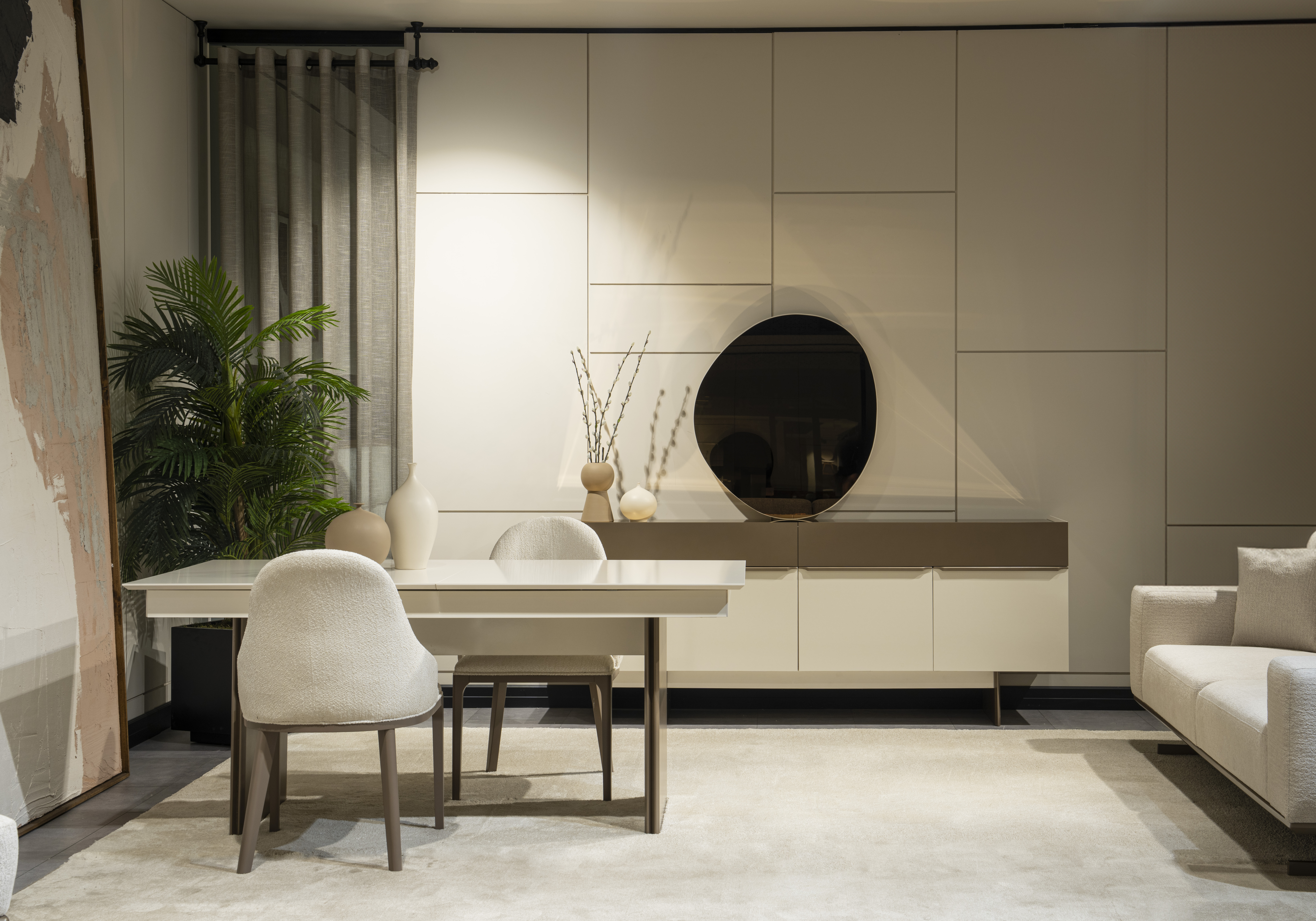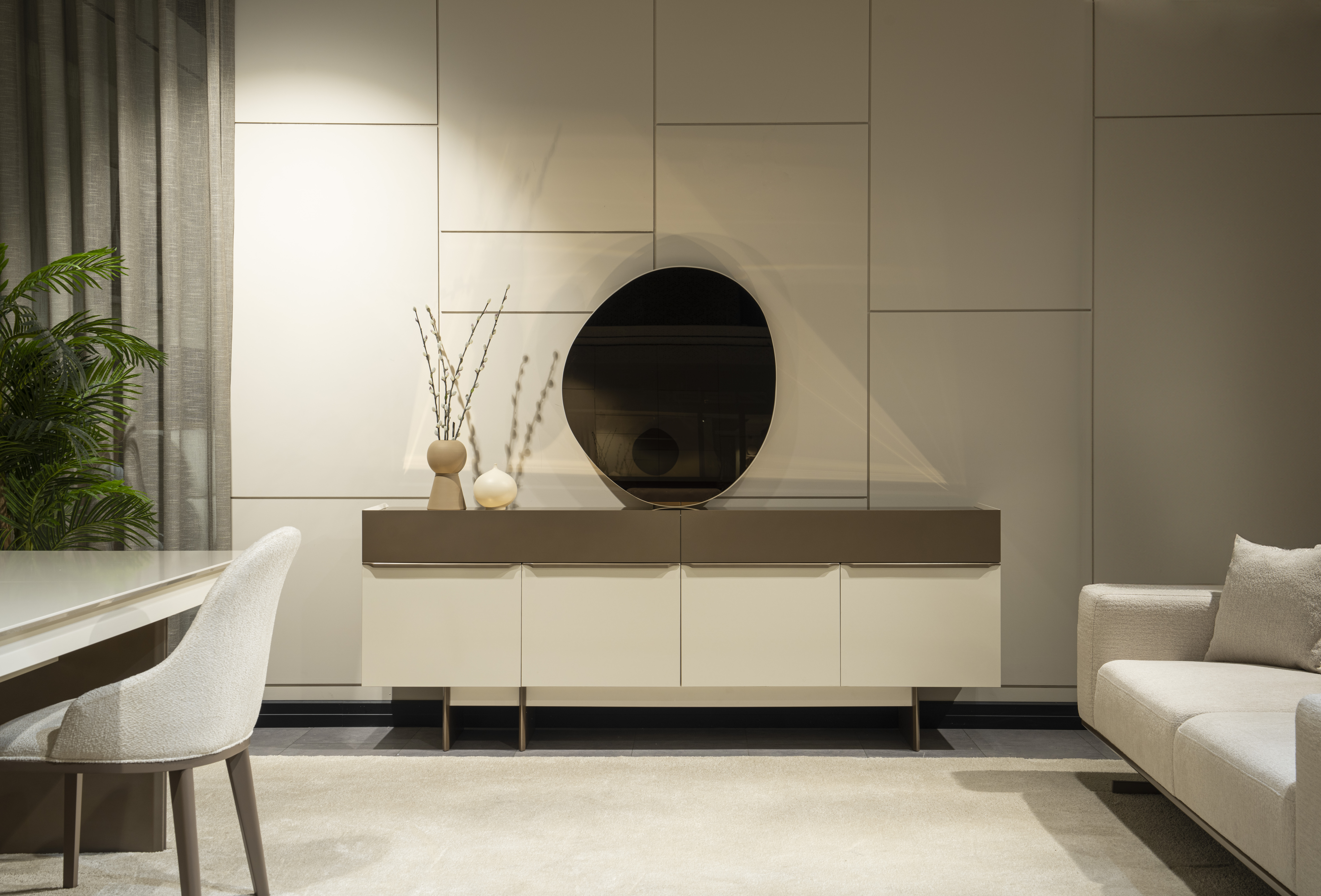 • Funzionalità: La credenza offre ampio spazio di archiviazione per stoviglie, posate e altri utensili, mentre lo specchio fornisce luce e una sensazione di spazio aggiuntiva.