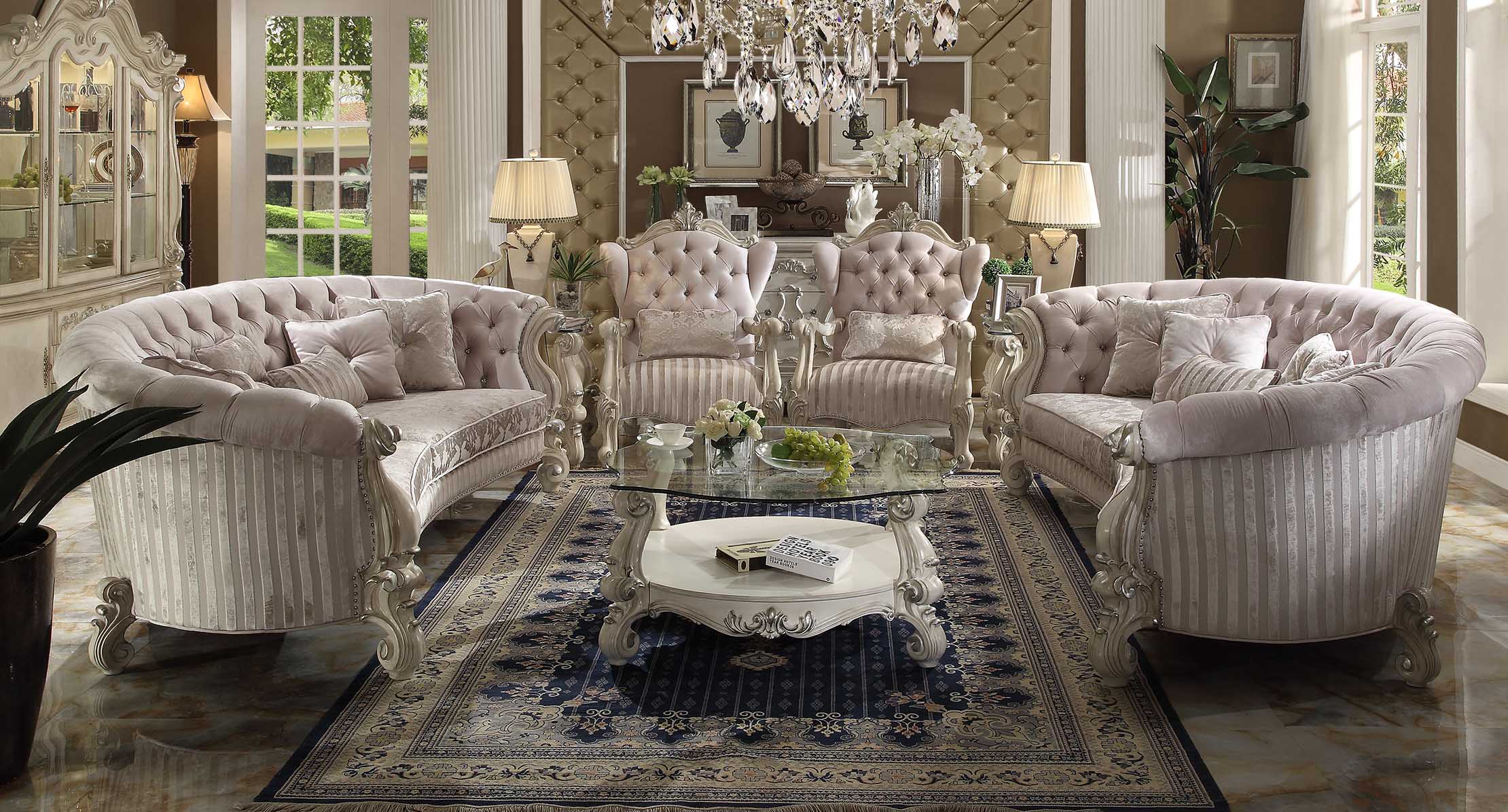 Sofà Barocco Set di divani Salotto Poltrona Divano Arredamento imbottito Sofà 4 pezzi.