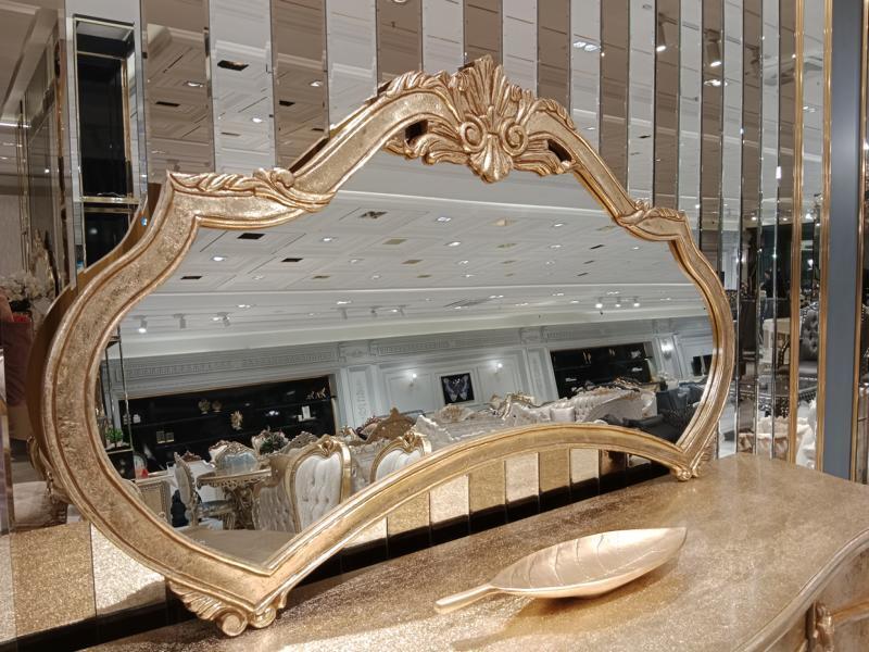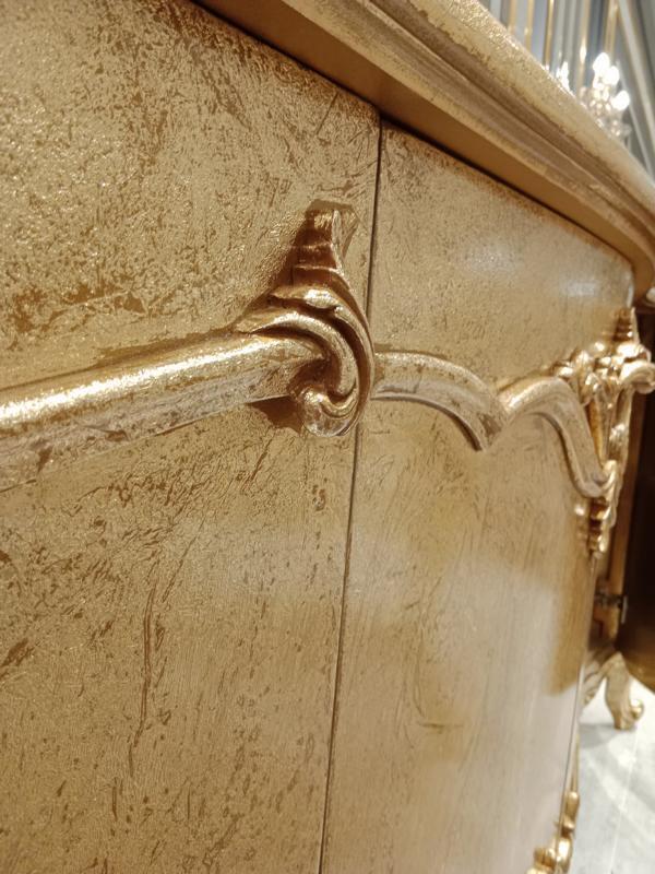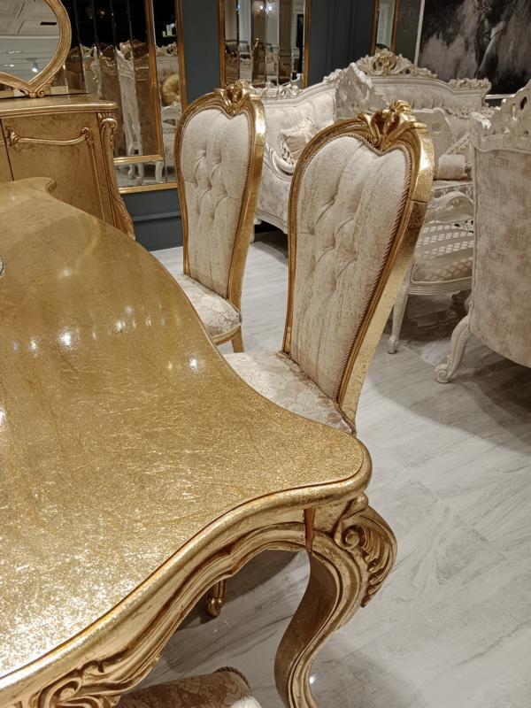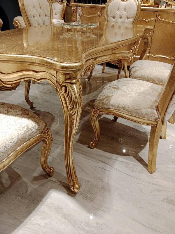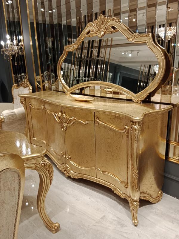 Tavolo da pranzo classico + 6 sedie + credenza con specchio oro in legno comò nuovo