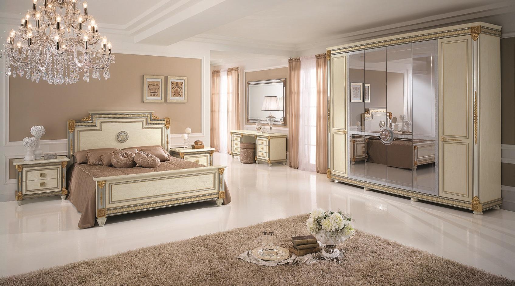 Set da camera da letto Design Moderno Mobili di lusso Letto 2 comodini 7 pezzi. Italia Nuovo