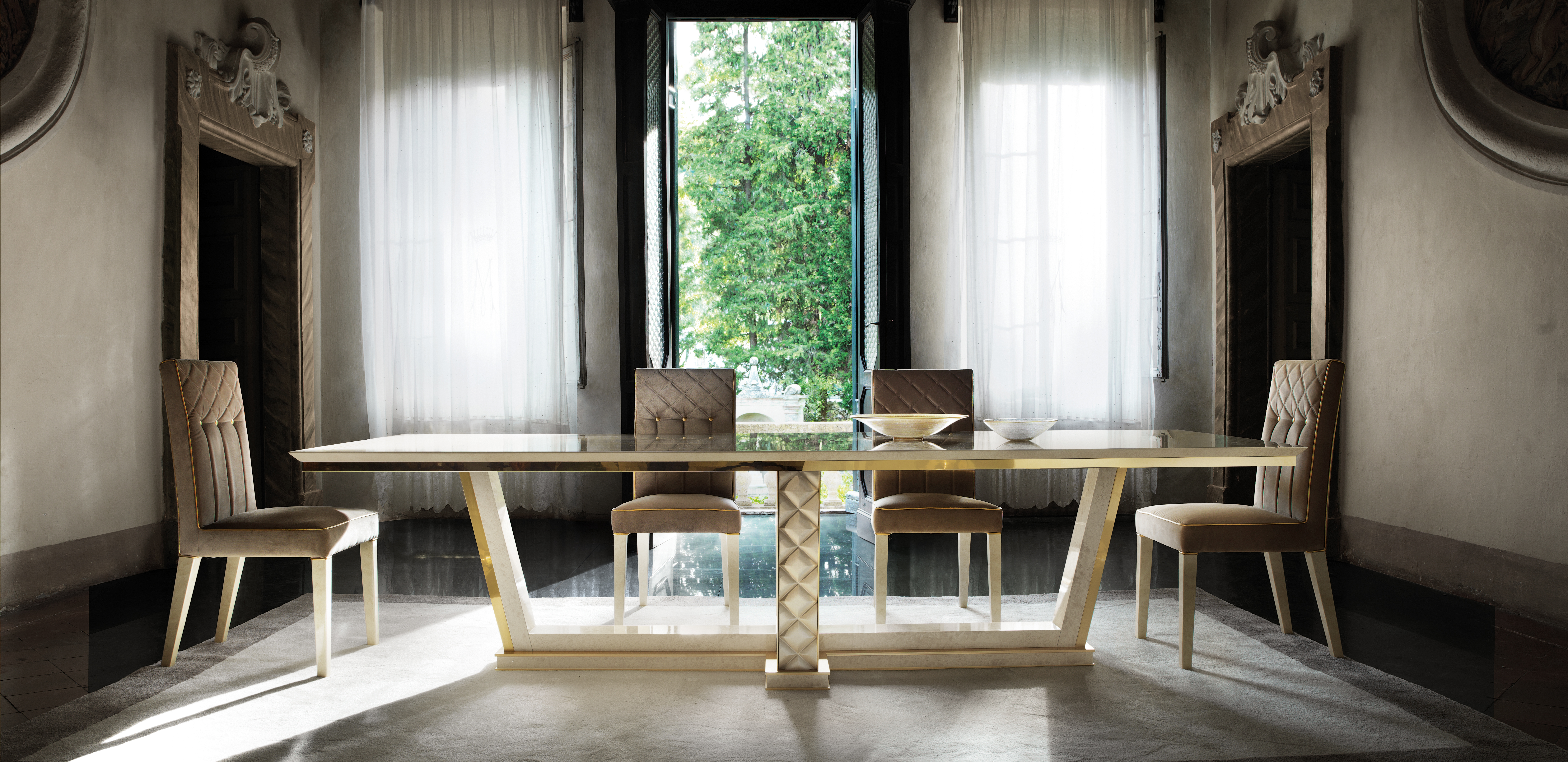 Le sedie sono caratterizzate da dettagli sofisticati e una struttura robusta, mentre il tavolo si adatta facilmente alle esigenze di spazio grazie all'inserto incluso. Con finiture eleganti e il tocco classico del colore come illustrato, questo set combina perfettamente lo stile Rococò, Barocco e Liberty per creare un'atmosfera di lusso in ogni sala da pranzo. Ideale per ospitare con stile o per creare un ambiente raffinato, il Tavolo da pranzo 4 sedie Sala da pranzo Tavolo Stile Rococò Barocco Liberty royal lusso è la scelta perfetta per chi cerca un arredamento esclusivo e di classe.