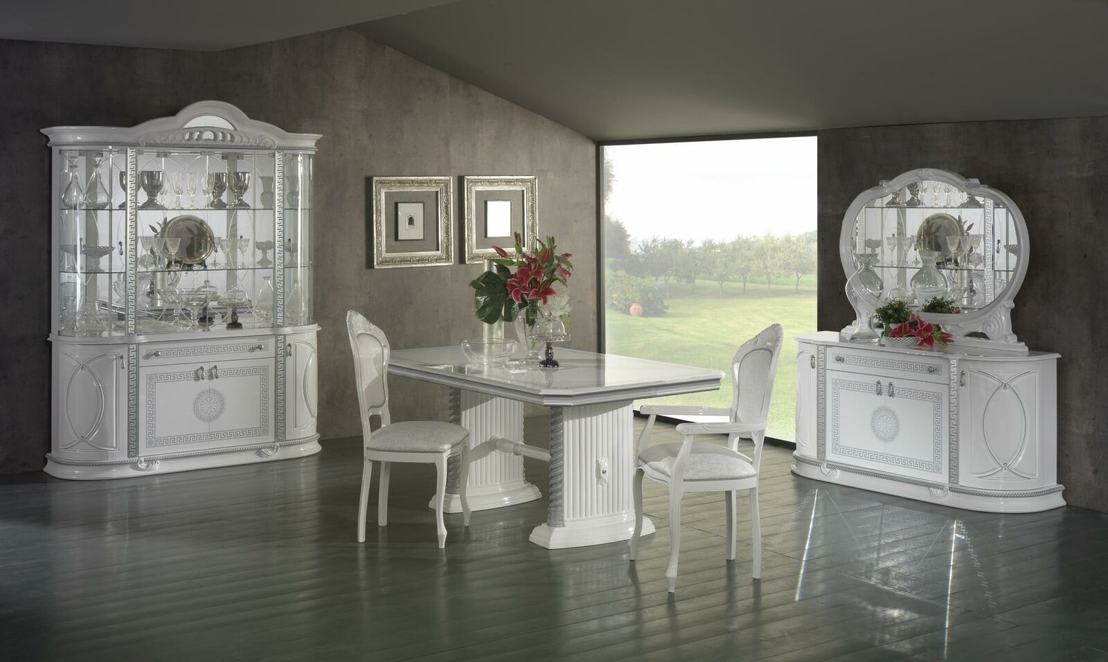 Questo set versatile è un'ottima scelta per chi desidera un arredamento completo e di qualità per la propria casa. Il tavolo da pranzo estensibile consente di adattare lo spazio alle esigenze di diverse occasioni, mentre la vetrina offre un'opportunità unica per esporre la propria collezione di oggetti. La presenza di specchio, credenza e imbottiti nel set lo rende perfetto per coordinare gli elementi chiave del soggiorno e della sala da pranzo, creando un'atmosfera accogliente e elegante. Con questo set, potrai godere di funzionalità e stile impeccabile in un'unica soluzione per la tua casa.
