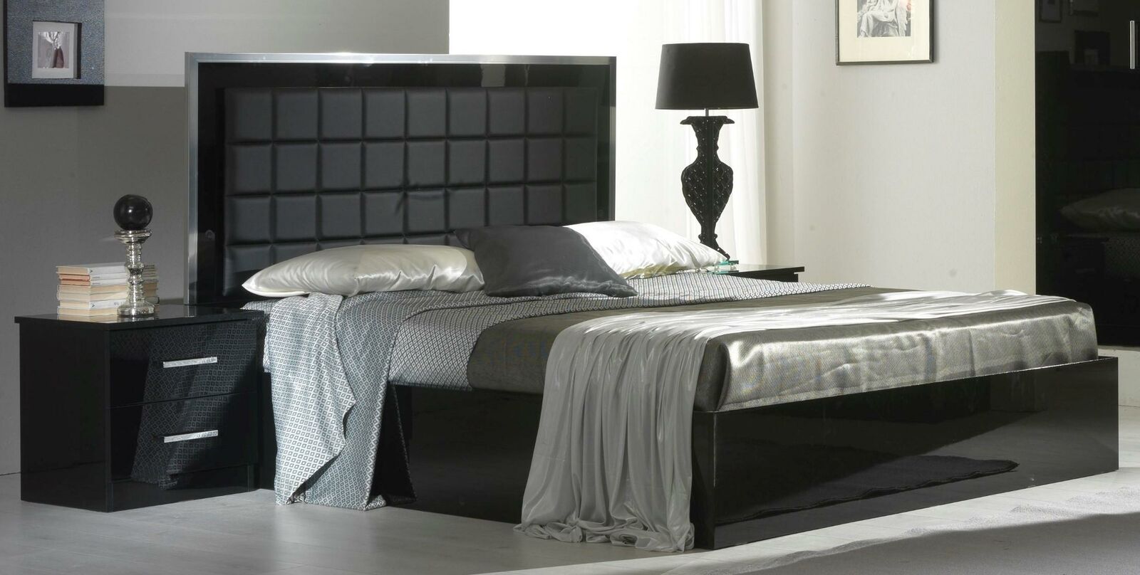 Letto matrimoniale, mobili da camera da letto, letto nero, letto moderno