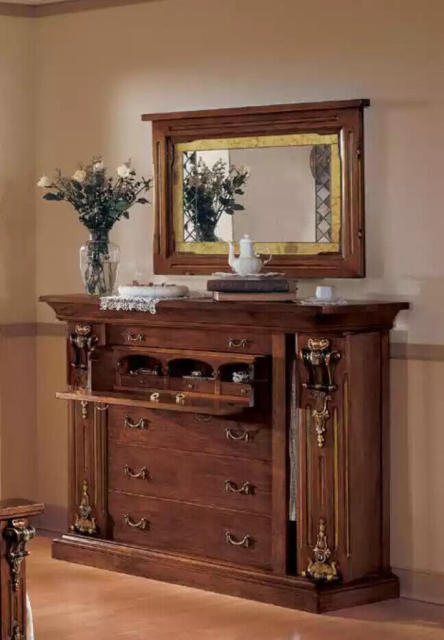 Camera da letto con cassettiera e specchio Mobili classici 2 pezzi Letto Armadio
