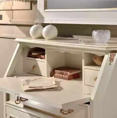 Mobile da camera bianco con specchio, set di mobili in stile classico, 2 pezzi, credenza, comò.