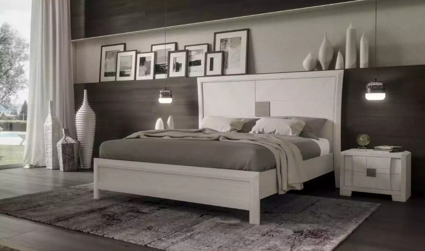 Realizzato in legno di alta qualità e disponibile nel colore come in foto, questo set di Letto e Comodini è perfetto per arricchire e ampliare lo stile moderno della tua camera da letto. Le alternative dimensioni disponibili su richiesta offrono la flessibilità di adattare il set alle esigenze specifiche dello spazio. Con il design elegante e le finiture di lusso, questo set di mobili aggiungerà un tocco di raffinatezza e comfort alla tua camera da letto.