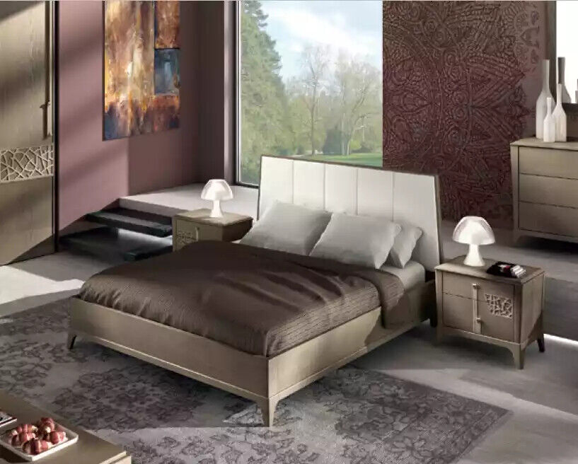 Camera da letto Letto 2x Comodino Design 6 pezzi Set completo marrone 6 pezzi