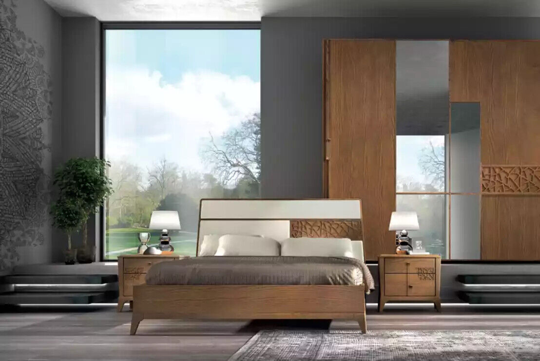 Mobili da camera da letto, set da camera da letto, letto, armadio, cassettiera, specchio