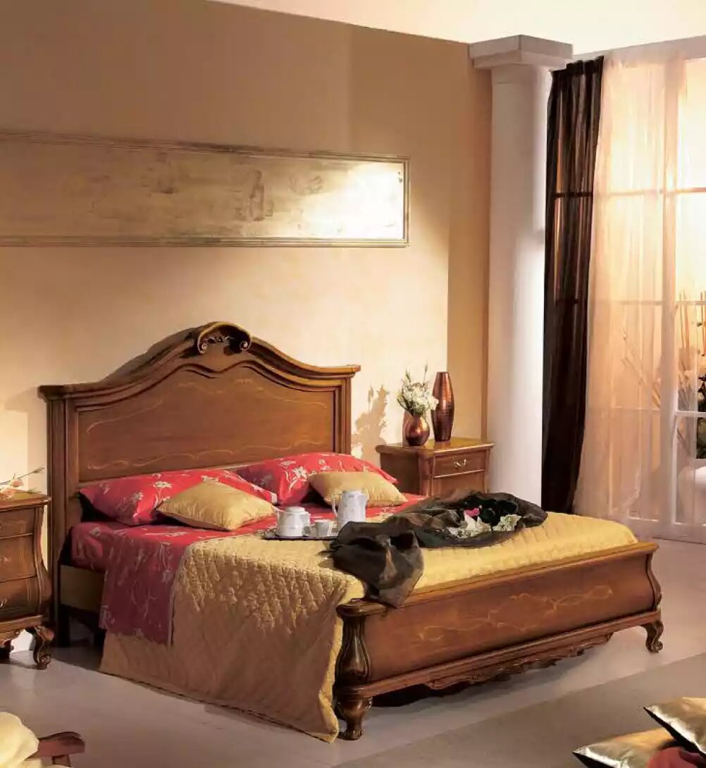 Set da camera da letto marrone con letto, 2 comodini, cassettiera, specchio - stile classico
