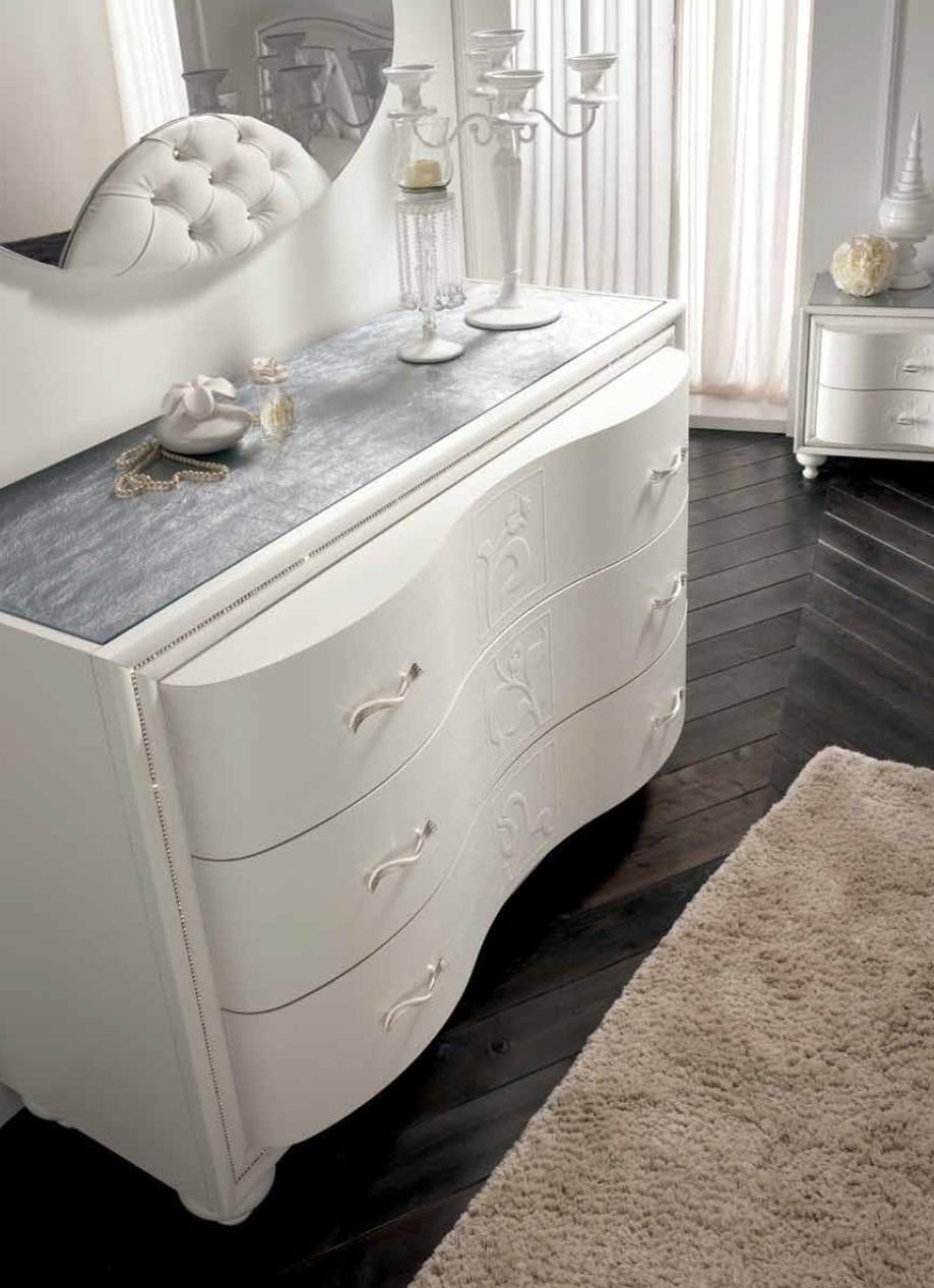 Set cassettiera specchio console di lusso, comodini camera da letto sgabello completo in legno.
