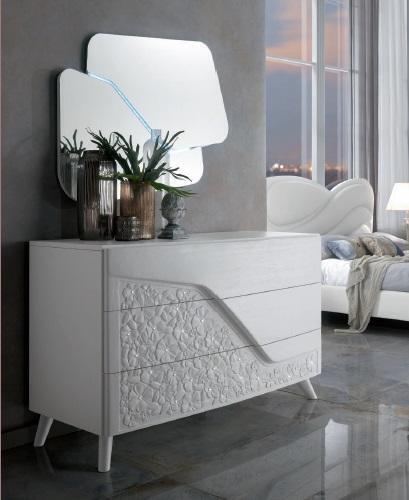 Comò con specchio in legno Mobili comodini Armadio Camera da letto Bianco Madia Nuova