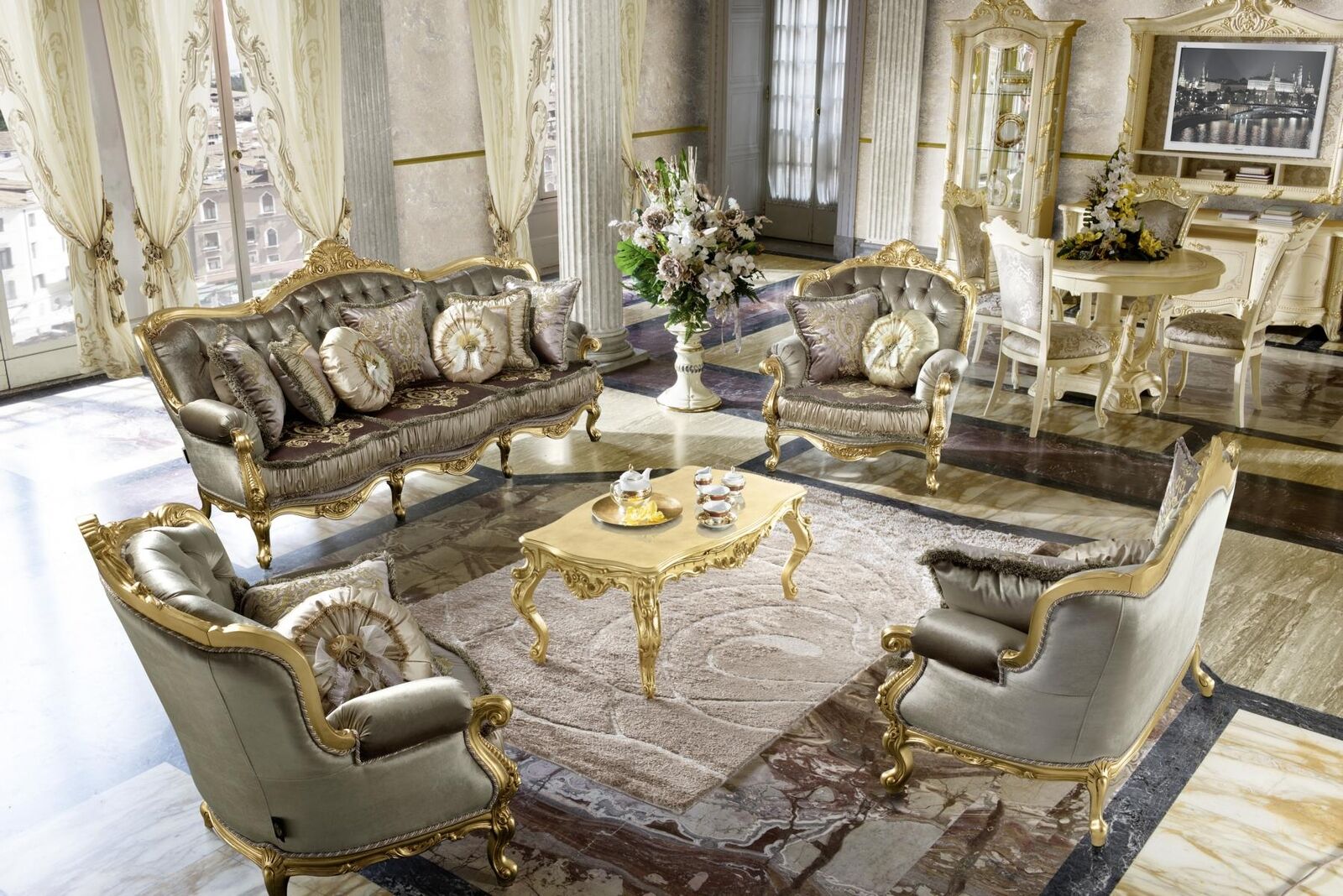 Set di mobili Tavolo e 4 sedie Lusso Sala da pranzo Gruppo di mobili 5 pezzi Italia