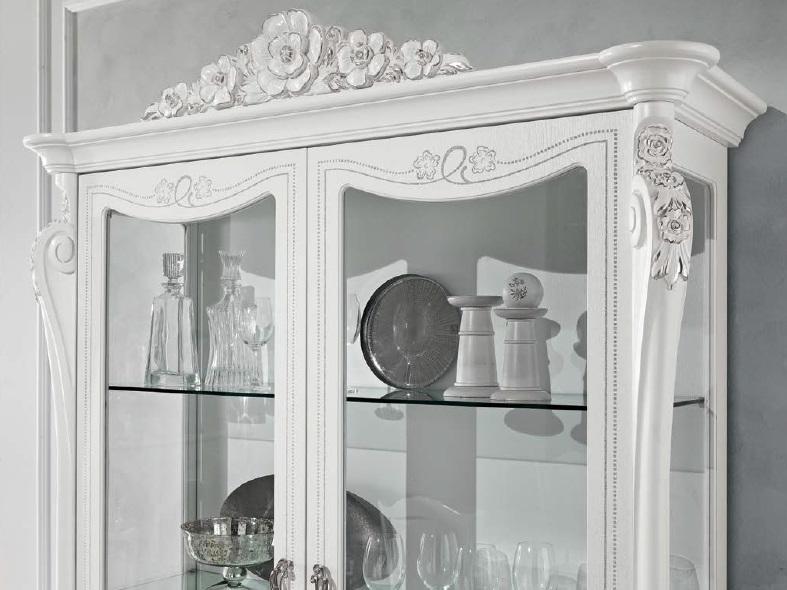 Set da pranzo Tavolo da pranzo 4 sedie Comò Vetrina Gruppo Bianco Nuovo 7 pezzi.