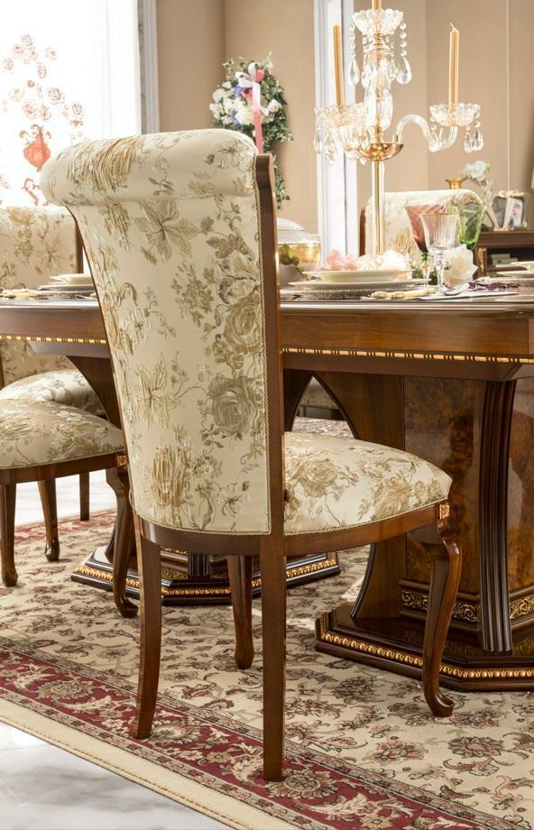 Set da pranzo con vetrina, tavolo, 6 sedie, cassettiera, specchio, stile barocco, nuovo, 10 pezzi.