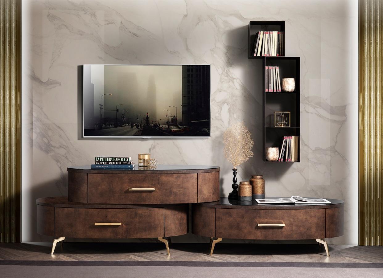 Arredamento per soggiorno, parete con mobile TV, set soggiorno.