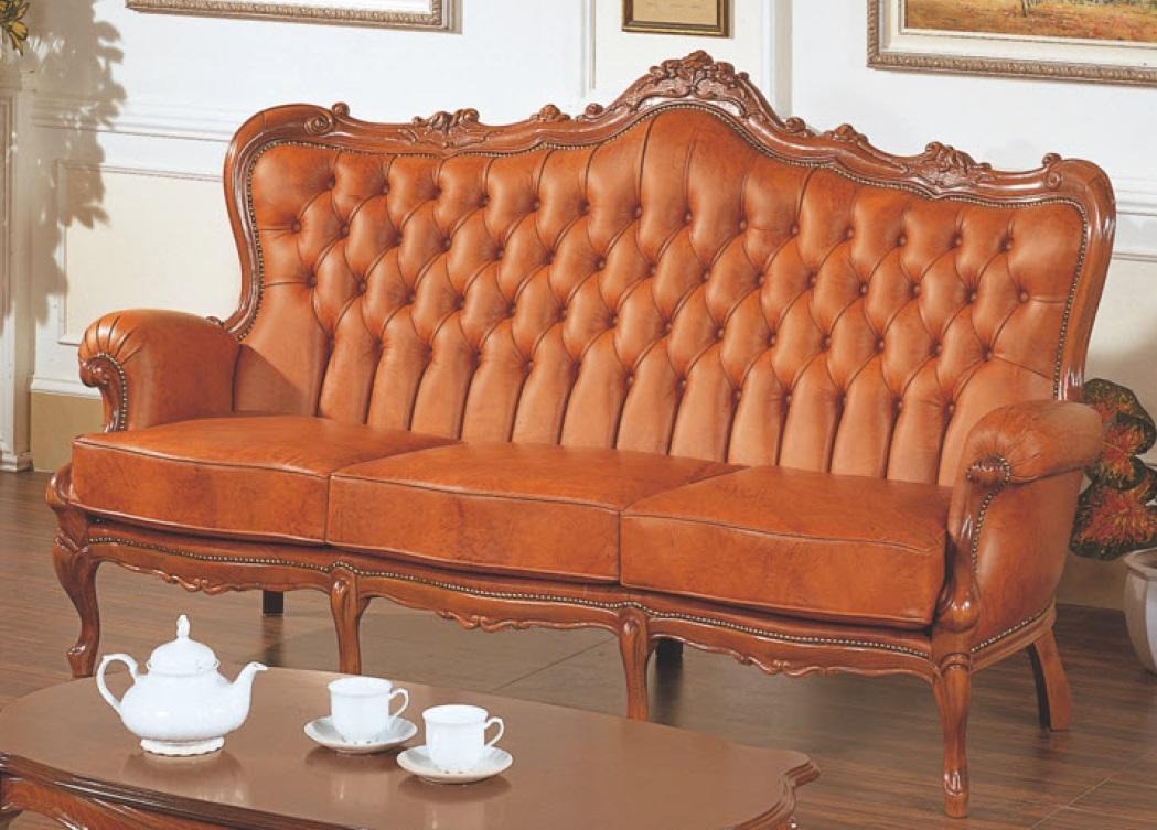 Sofà a 3 posti di lusso in pelle marrone in stile Art Déco.