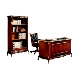 Classico set da scrivania da ufficio composto da scrivania in legno e sedia, stile barocco.