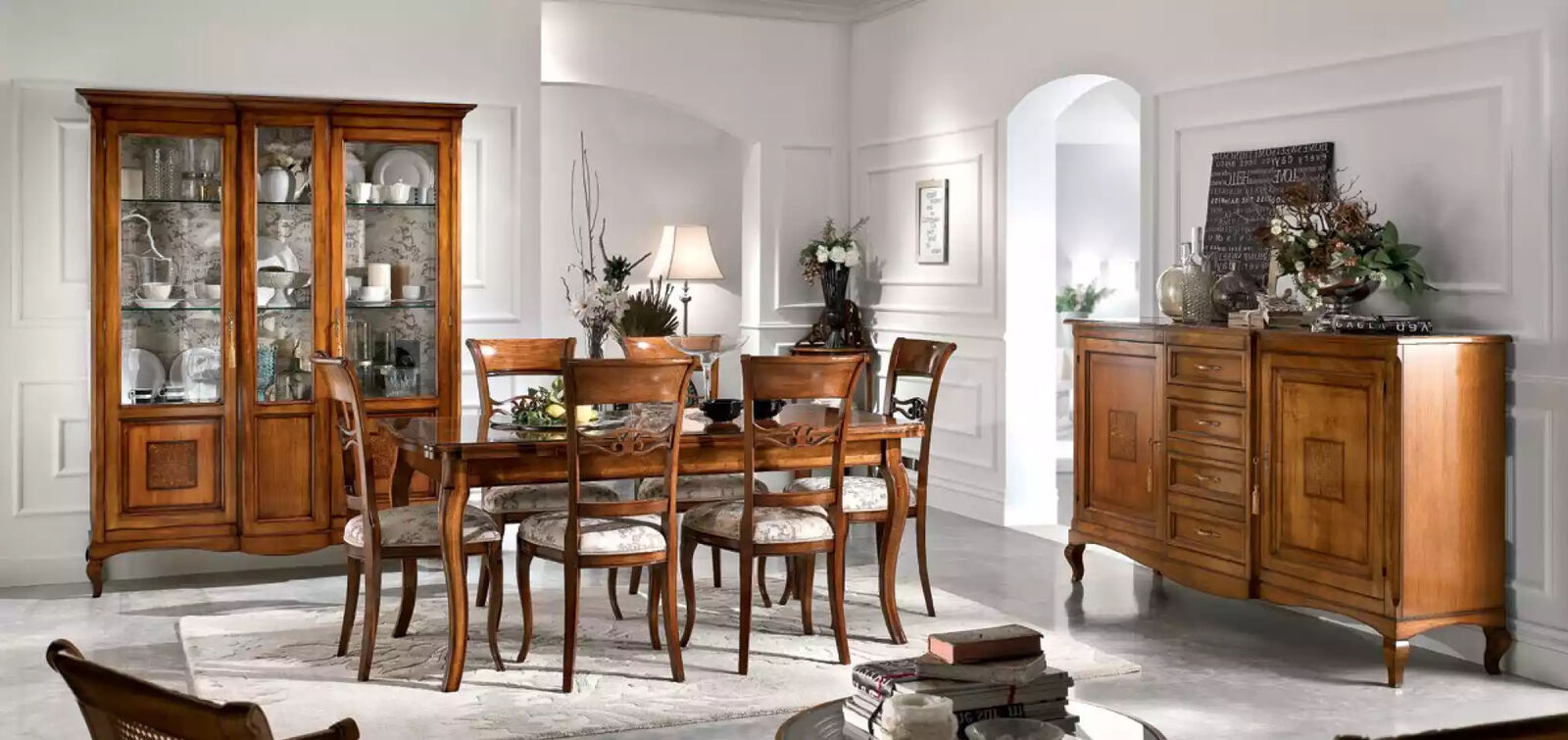 Con questo set, potrai accogliere comodamente amici e familiari per piacevoli pranzi e cene. Goditi momenti conviviali intorno al tavolo spazioso e imponente, affiancato dalle eleganti sedie che offrono comfort durante i pasti. La credenza e la vetrina offrono ampio spazio per riporre stoviglie e oggetti d'arte, aggiungendo un tocco di raffinatezza all'ambiente. Questo set sarà il punto focale della tua sala da pranzo, trasformandola in uno spazio accogliente e di classe per ogni occasione.