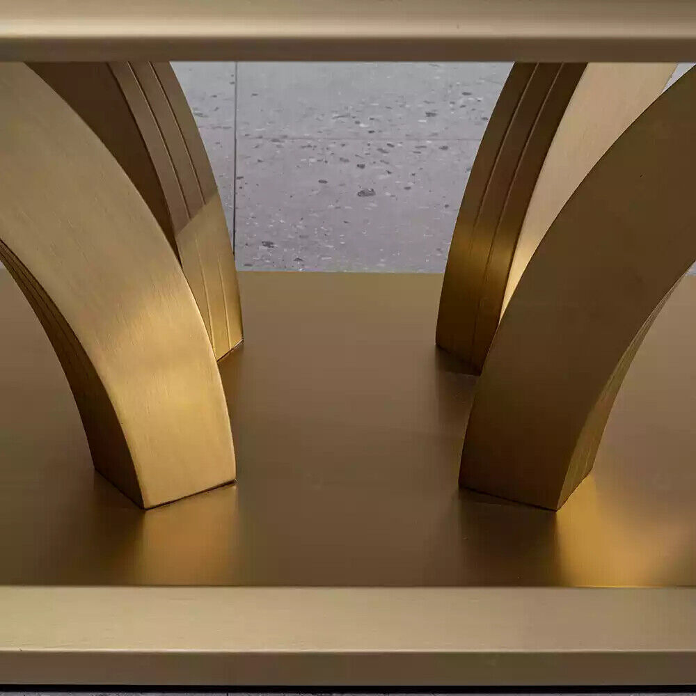 Il tavolino design soggiorno lusso oro 115x70 è un complemento d'arredo elegante e di lusso che aggiungerà stile e raffinatezza alla tua casa. Realizzato con materiali di alta qualità, questo tavolino da caffè presenta un design moderno e accattivante che si adatta perfettamente a qualsiasi ambiente. Con le sue dimensioni di ca. 115 x 70 x 44 cm, questo tavolino offre ampio spazio per posizionare bevande, riviste o oggetti decorativi, rendendolo un elemento pratico e funzionale per il tuo soggiorno. La struttura in acciaio inossidabile assicura resistenza e durata nel tempo, garantendo che questo tavolino rimanga un pezzo d'arredamento di alta qualità per gli anni a venire.
