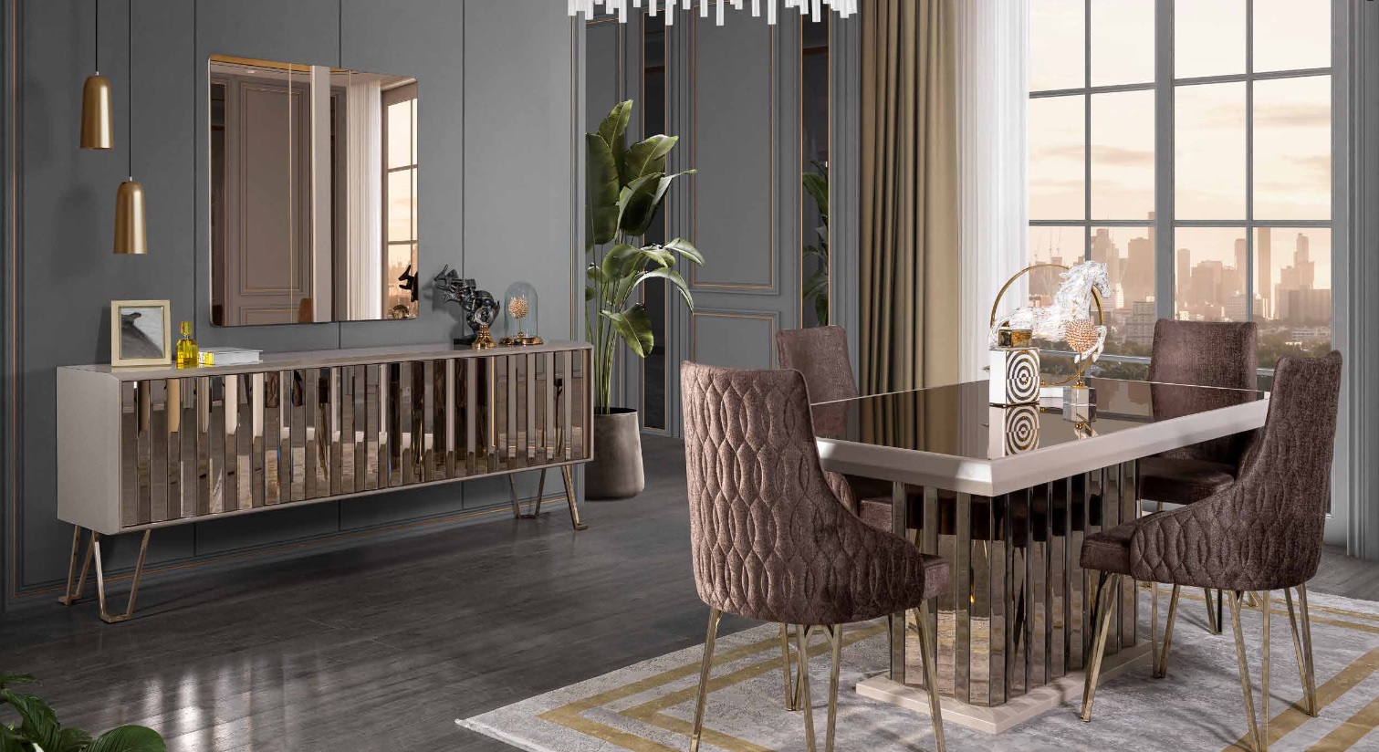 Nel set troverai anche un elegante Comò dalle dimensioni ca: 219 x 48 x 85 cm, perfetto per riporre stoviglie, tovaglie o oggetti decorativi. Il Specchio incluso, con misure ca: 105 x 2 x 98 cm, completa l'arredamento, aggiungendo luce e profondità all'ambiente. Realizzato con materiali di qualità come Legno, Metallo e Tessuto, questo set garantisce durata e stile nel tempo, mentre il colore come mostrato si adatta facilmente a diversi stili di arredamento. Aggiungi un tocco di design alla tua sala da pranzo con il set tavolo e sedie Designer Braun, un insieme completo di arredi per rendere unica ogni tua esperienza culinaria.