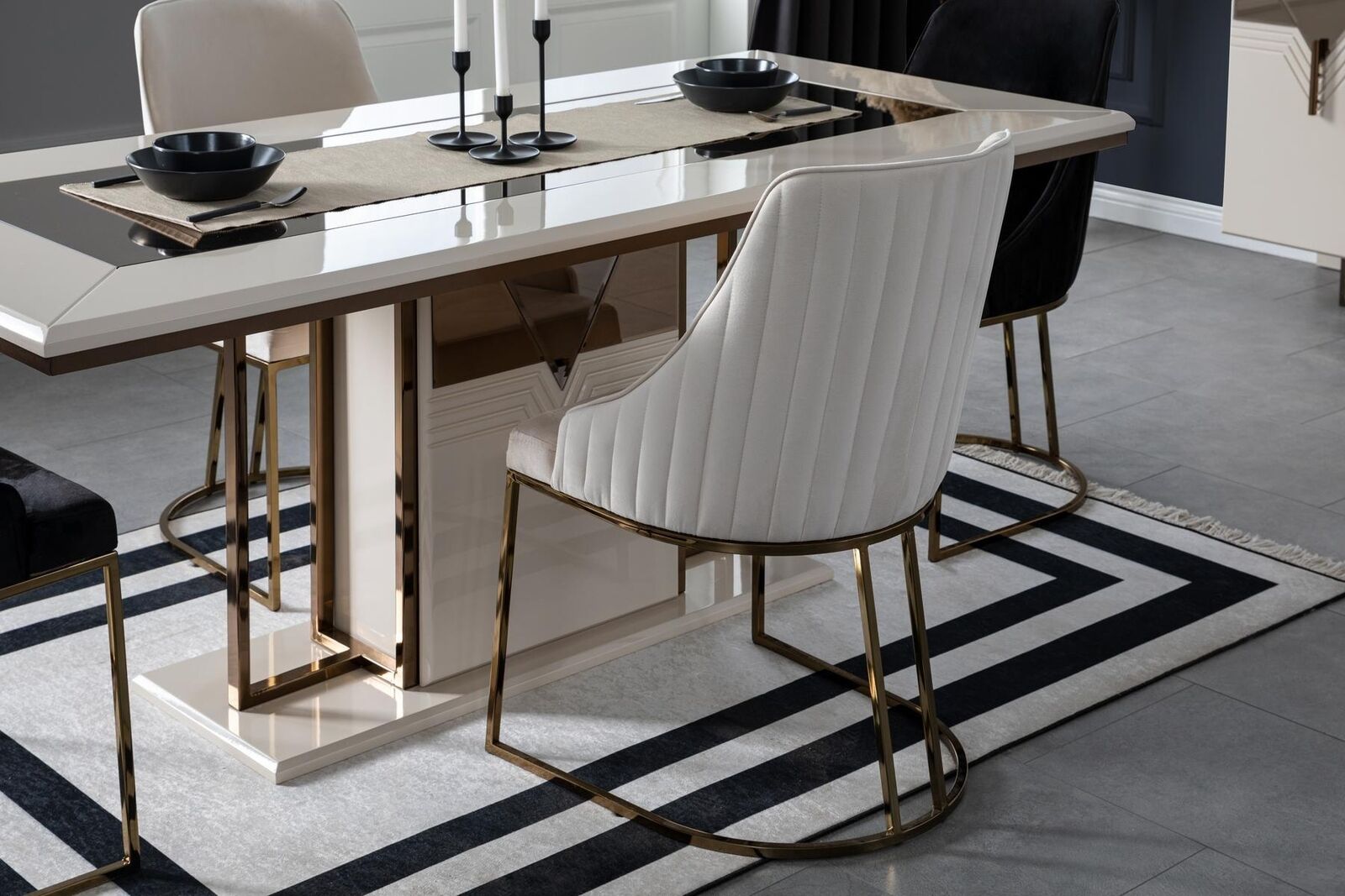 Set da pranzo di lusso 9 pezzi bianco per sala da pranzo con tavolo, sedie e buffet
