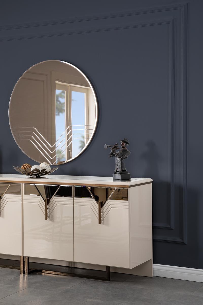 Il Set da pranzo di lusso 9 pezzi bianco per sala da pranzo con tavolo, sedie e buffet è la soluzione perfetta per chi desidera arredare la propria sala da pranzo con stile e comfort. Questo elegante set include un tavolo da pranzo spazioso e sei sedie coordinate che garantiscono comfort ottimale durante i pasti. La presenza di una credenza e uno specchio integrati aggiunge un tocco di raffinatezza all'ambiente, offrendo spazio extra per riporre stoviglie e decorazioni. Realizzato con materiali di alta qualità come metallo, legno e tessuto, questo set assicura durata e resistenza nel tempo, mentre il design elegante e il colore bianco donano luminosità e stile alla tua sala da pranzo.