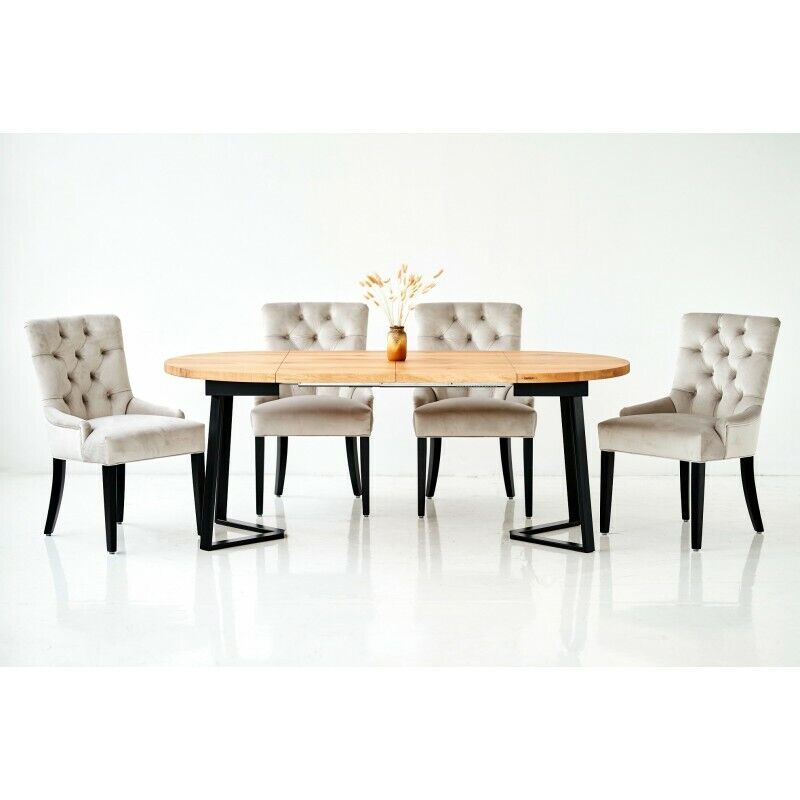 Il Set da pranzo Tavolo + 4 sedie Chesterfield Sedie Sedili in legno Imbottitura completo è l'ideale per arredare la tua sala da pranzo con stile ed eleganza. Questo set include un tavolo da pranzo robusto e quattro sedie Chesterfield con sedili in legno e imbottitura di alta qualità. Con la scelta libera delle dimensioni del tavolo e dei colori disponibili, potrai personalizzare il set per adattarlo perfettamente al tuo ambiente.