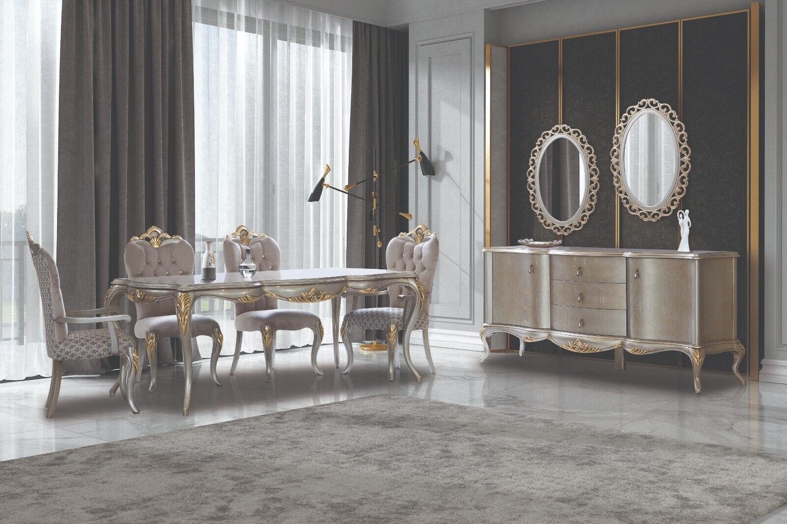 Gruppo completo da pranzo: tavolo, credenza, sala da pranzo, tavolo da pranzo, set in legno 12 pezzi beige.