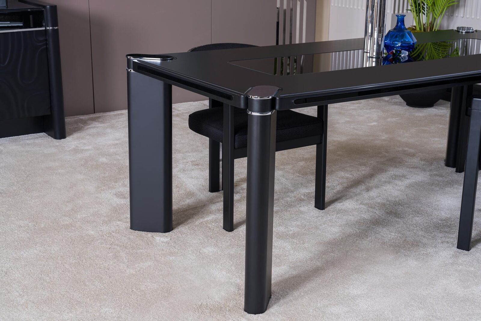 Set da pranzo nero Sala da pranzo Tavolo da pranzo 6x Sedia Credenza 3x Specchio Gruppo da pranzo di lusso