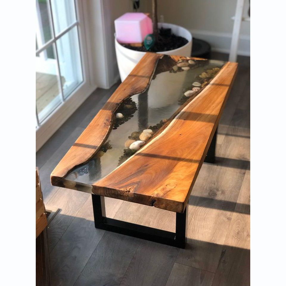 Resina epossidica Tavolo fiume in legno vero Blu acqua Tavolo Tavolo in resina epossidica Nuovo Massiccio