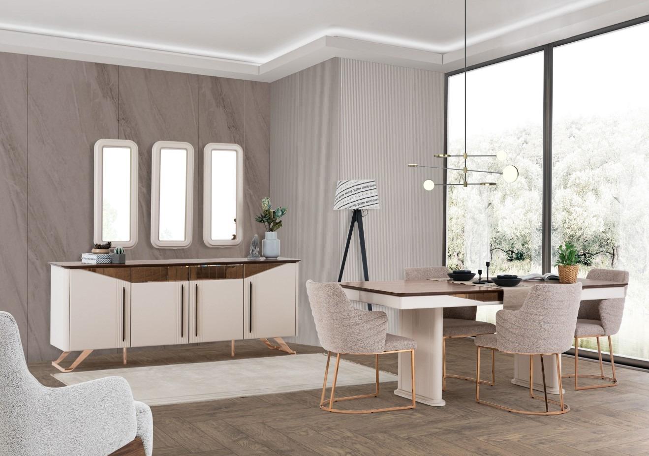 Set da pranzo 8 pezzi (tavolo da pranzo + 6 sedie + credenza), sala da pranzo