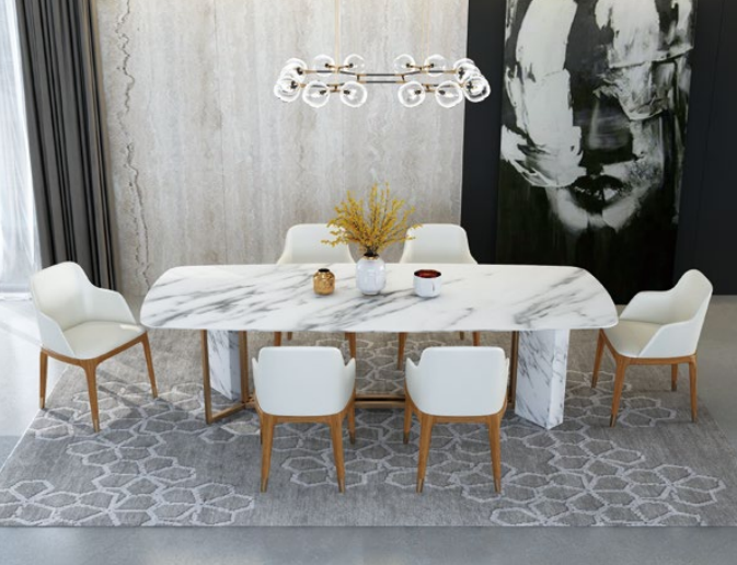 Con un design moderno e minimalista, questo tavolo si adatta perfettamente a qualsiasi ambiente, dal salotto alla sala riunioni. **Il colore come illustrato** aggiunge un tocco di eleganza, mentre il materiale di legno con piano in acciaio inossidabile / imitazione marmo garantisce robustezza e facilità di manutenzione. Ideale per uso domestico o professionale, questo tavolo offre una superficie spaziosa e resistente per lavorare, mangiare o incontrarsi con colleghi. Scegli il Tavolo da pranzo per unire funzionalità e stile in un'unica soluzione ben progettata.