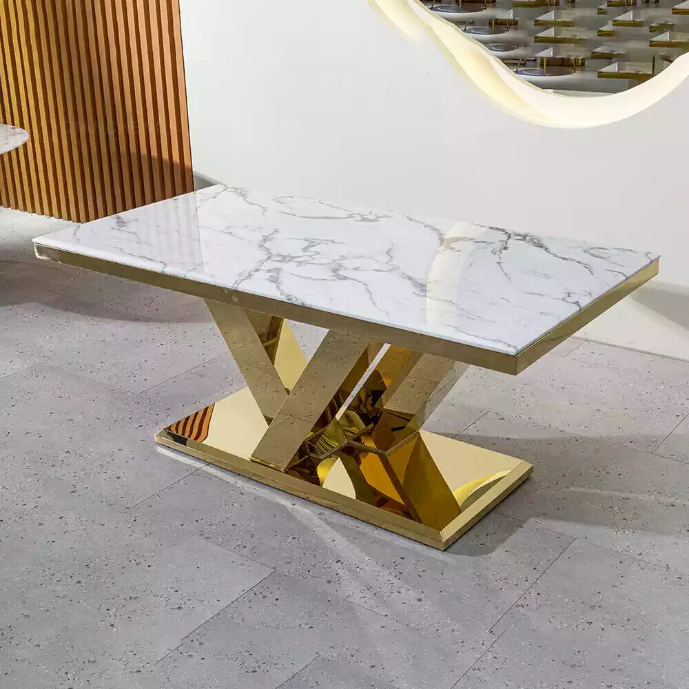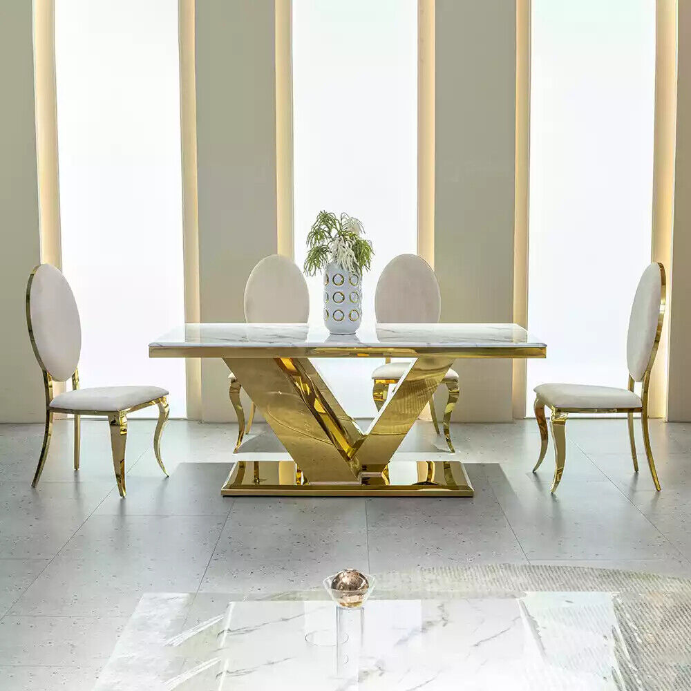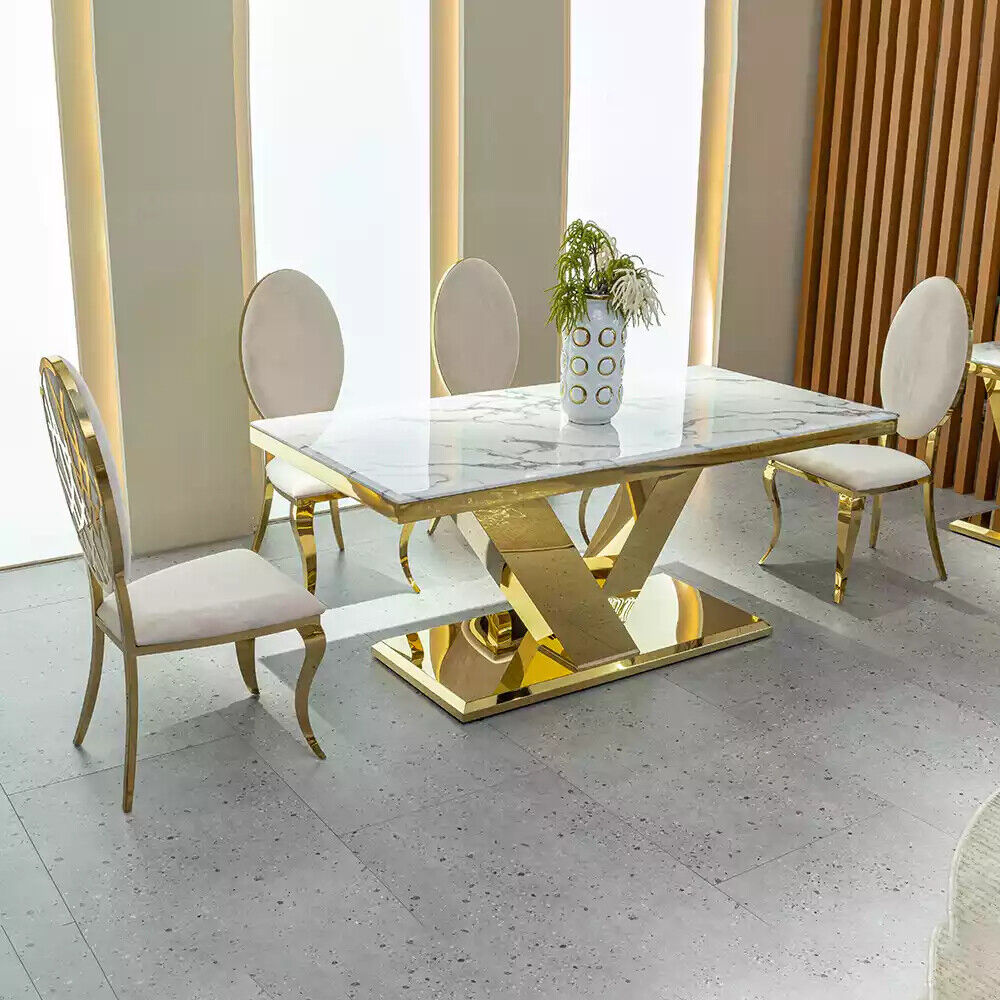 Tavolo da pranzo Tavolo Tavoli Moderni Designer da sala da pranzo Nuovi: Il nostro tavolo da pranzo è l'elemento perfetto per completare il tuo ambiente domestico con stile e funzionalità. Con dimensioni approssimative di 200 x 75 x 100 cm, questo tavolo garantisce ampio spazio per accogliere familiari e amici durante i pasti. Realizzato in acciaio inossidabile, questo tavolo si distingue per la sua resistenza e durabilità nel tempo. Il design moderno ed elegante si abbina perfettamente a qualsiasi arredamento, donando un tocco di raffinatezza alla tua sala da pranzo.