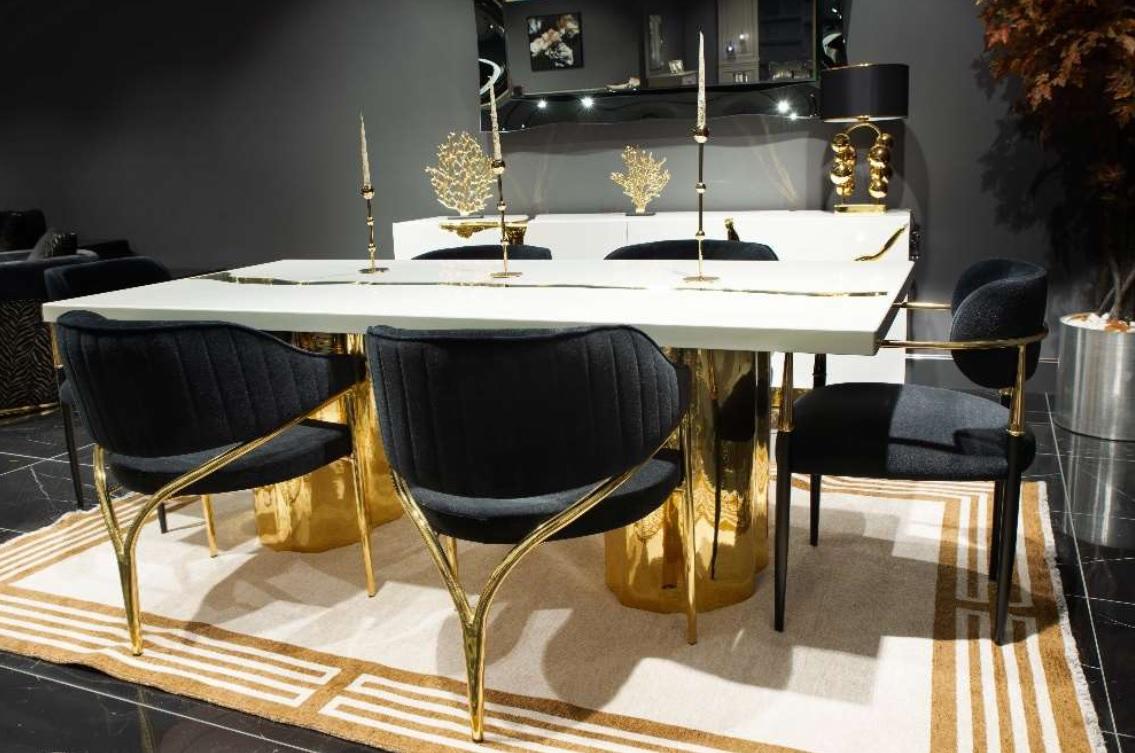 Arredamento da sala da pranzo Set da pranzo Angolo pranzo Tavolo da pranzo di lusso Sedie Bianche in legno 7 pezzi