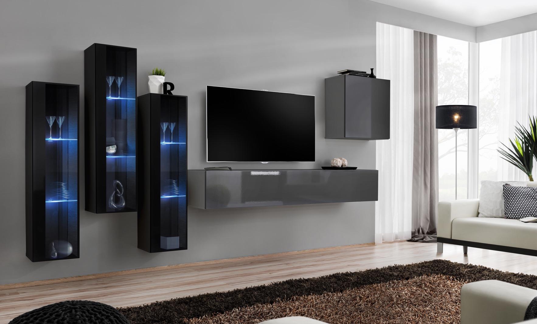 Designer Grigio Parete Vivente Supporto TV Completo Lucido Madia Armadio a Muro: Questo elegante set per il soggiorno presenta un design moderno e funzionale, perfetto per arredare con stile il tuo ambiente domestico. La parete soggiorno è caratterizzata da dimensioni generose, ideali per organizzare oggetti e decorazioni, mentre il supporto TV offre una piattaforma sicura e robusta per il tuo schermo. Realizzato con materiali di alta qualità, questo set garantisce durata e resistenza nel tempo, senza tralasciare l'estetica raffinata.