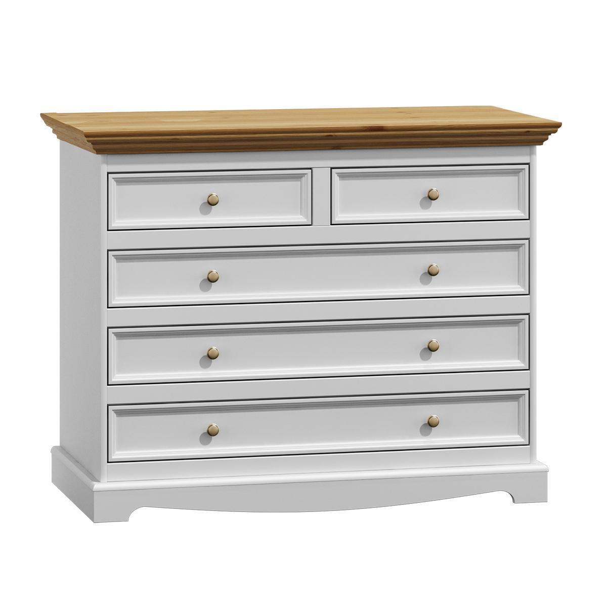 Questo Comò offre non solo ampio spazio per riporre abiti, biancheria o oggetti personali, ma si adatta anche a diversi contesti d'arredamento. La sua lunghezza di ca. 111.5 cm consente di utilizzarlo come piano d'appoggio o come base per elementi decorativi. Con un'altezza di ca. 87.5 cm e una larghezza di ca. 45 cm, si adatta facilmente a stanze di varie dimensioni. Sia per un uso pratico come madia o comodino, sia come elemento di design per uno stile rustico e confortevole, questo mobile country si distingue per la sua versatilità e qualità.