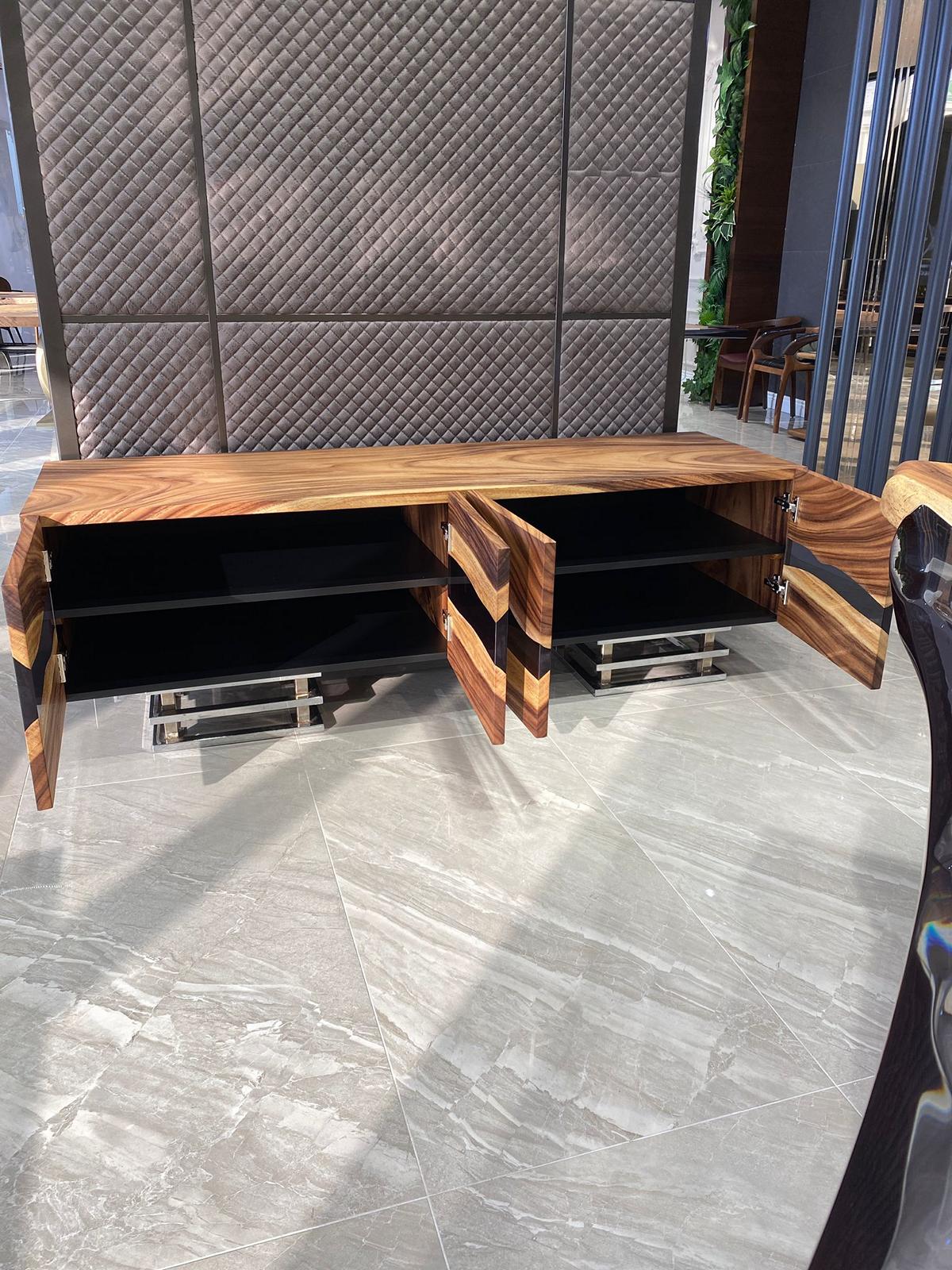 Mobile bar credenza cassettiera in resina epossidica marrone soggiorno legno cassettiere