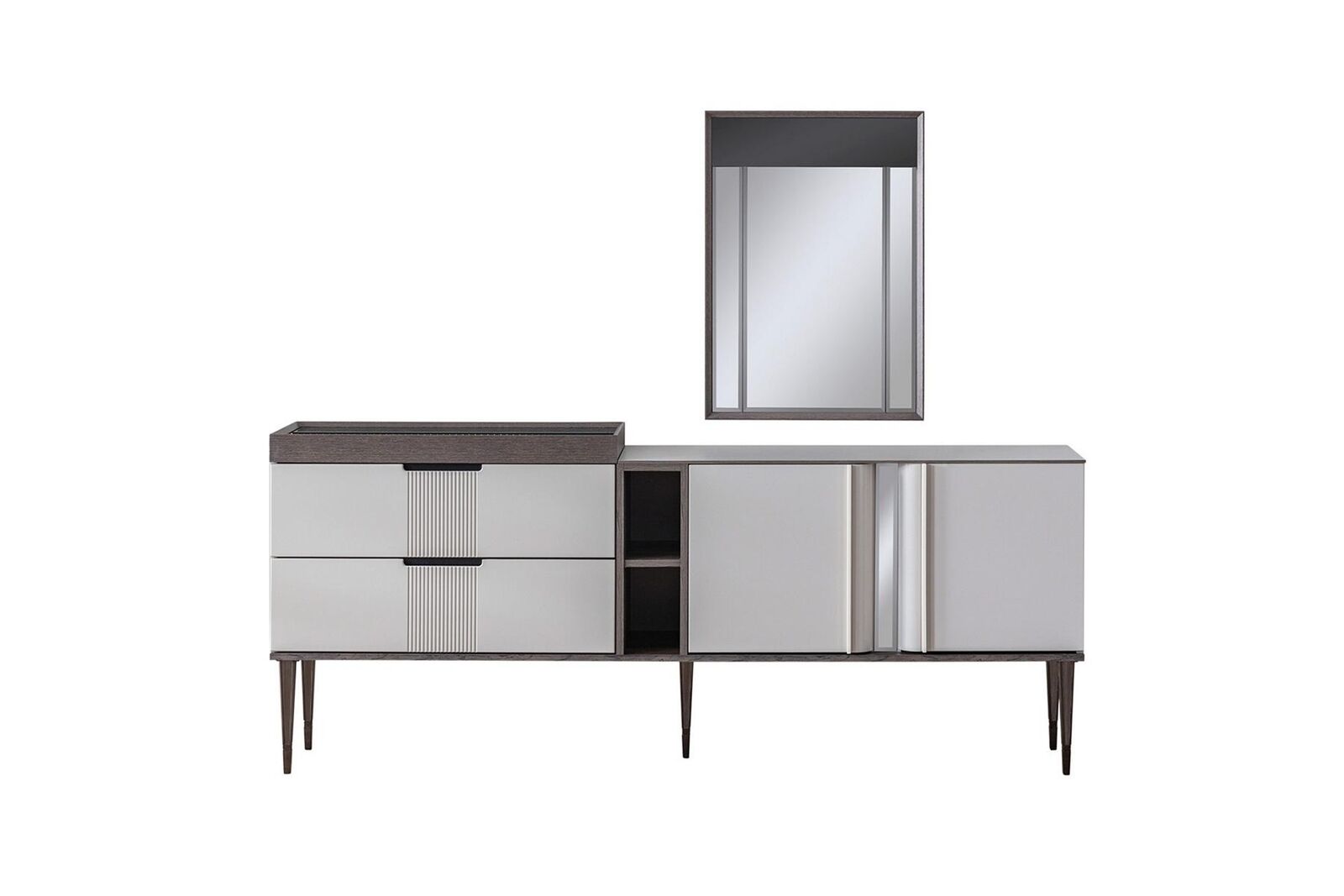 Con le sue dimensioni generose di ca. 206 x 42 x 88 cm per la credenza e ca. 58 x 7 x 82 cm per ciascuno specchio, questo set offre non solo funzionalità ma anche un'estetica impressionante. La combinazione di colore come in foto si adatta facilmente a diversi stili di arredamento, mentre la qualità dei materiali assicura un investimento duraturo nel tempo. Che tu stia cercando di creare un ambiente elegante per le cene speciali o desideri aggiungere un tocco di lusso alla tua casa, il Set da pranzo di lusso Exclusive è la scelta perfetta per chi cerca qualità e stile in un unico prodotto.