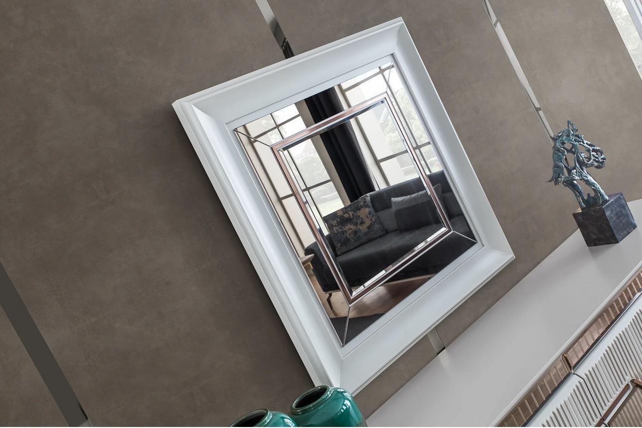 Set da pranzo di design composto da credenza a 2 ante, specchio e comodino color argento.