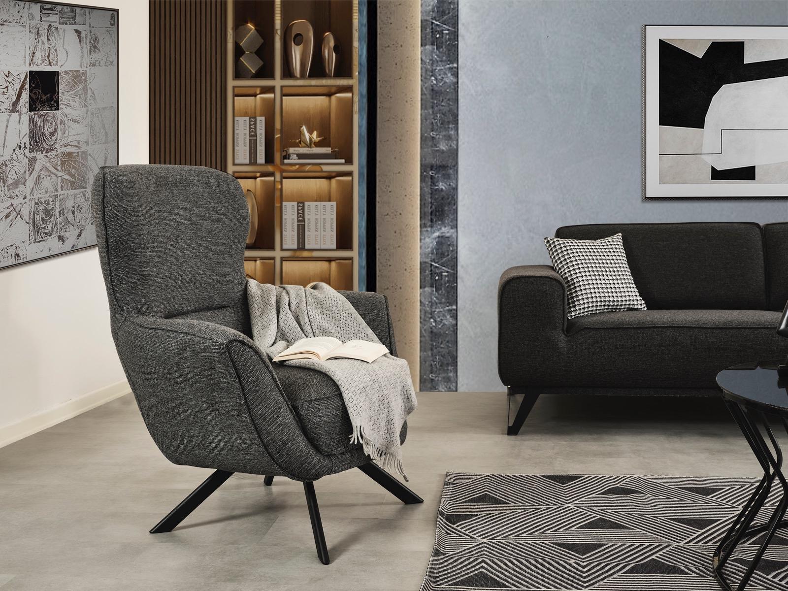 Grigio Colore Design Moderno Poltrona Monoposto Tessuto Materiale Tessile Design Moderno