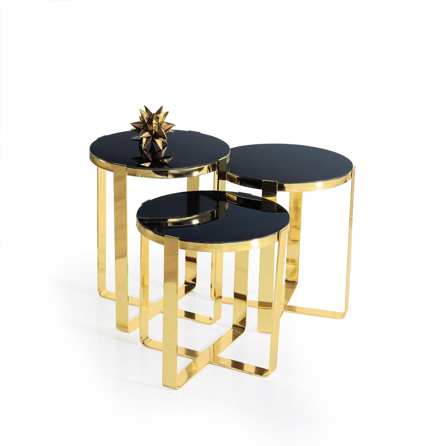 Gruppo di tavolini da caffè da salotto 3 pezzi tavolini dorati.