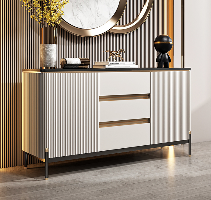 Questo armadio di lusso è ideale per chi cerca un mix di eleganza e funzionalità120 cm, un'altezza di circa 100 cm e una profondità di circa 40 cm, offre una soluzione di stoccaggio versatile per la tua casa. Realizzato con materiali di alta qualità come legno ed acciaio inossidabile, questo comò è progettato per durare nel tempo e aggiungere un tocco di stile alla tua casa.