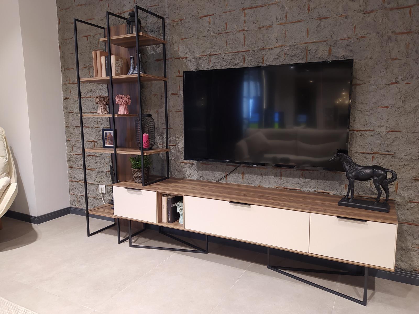 Con le sue dimensioni di 240 x 46 x 187 cm, questo mobile offre ampio spazio di archiviazione e display per soddisfare le tue esigenze di organizzazione in soggiorno. Il supporto TV di 200 cm può ospitare comodamente il tuo schermo elettronico, mentre la libreria aperta ti permette di esporre i tuoi libri preferiti o oggetti d'arte. Grazie al suo colore neutro e alla combinazione di legno e metallo, questo mobile si adatta perfettamente a qualsiasi stile d'arredamento, dall'industriale al moderno. Con la Soggiorno Mobile TV Libreria 240 cm in legno, potrai creare un ambiente accogliente e organizzato per godere al meglio dei tuoi momenti di relax in famiglia o con gli amici.