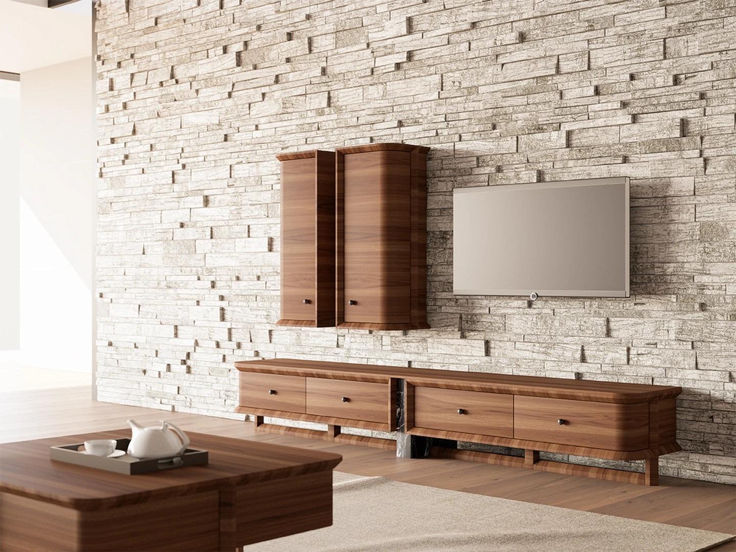 Completa parete soggiorno salotto mobile porta TV 2 armadi sospesi mobili in legno