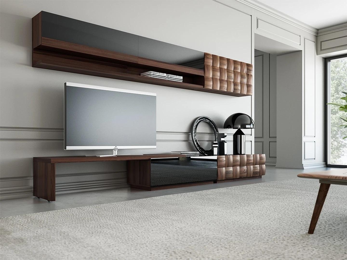Mobili per soggiorno completi, parete attrezzata, mobile TV, armadio a muro, 2 mensole da parete design.