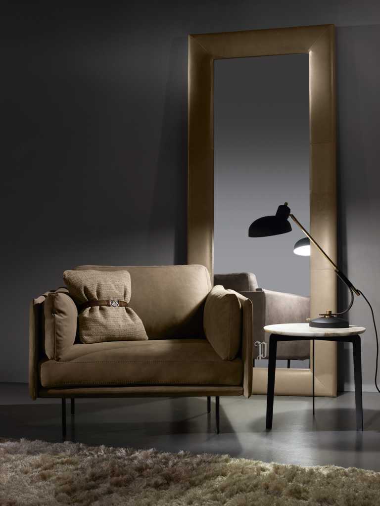 Design, poltrona, grigio, imbottito, pelle, moderno, salotto