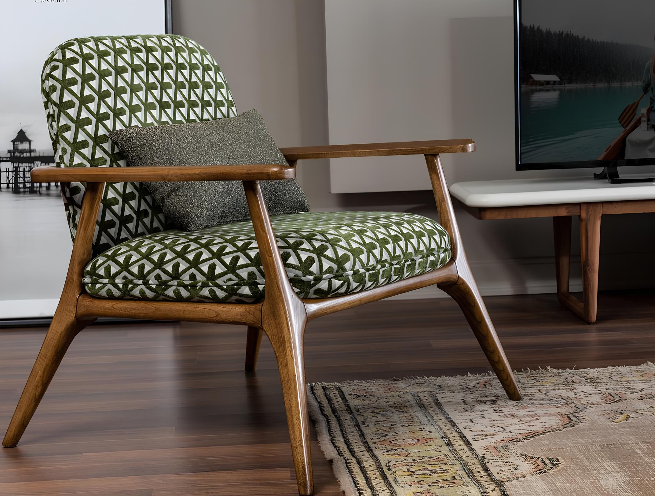 Poltrona Poltrona a orecchio Poltrona cocktail Sedia Design moderno Grigio Tessuto Verde