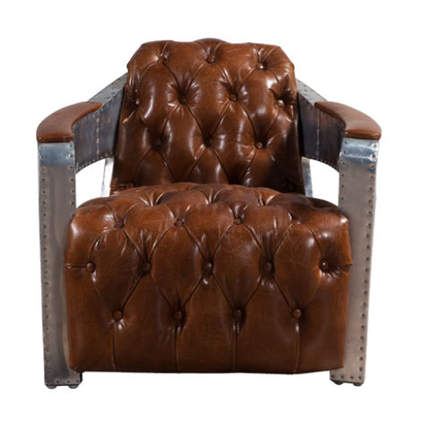 Poltrona Aviatore Chesterfield Shabby Vintage Sedia in Pelle Club Lounge di Design