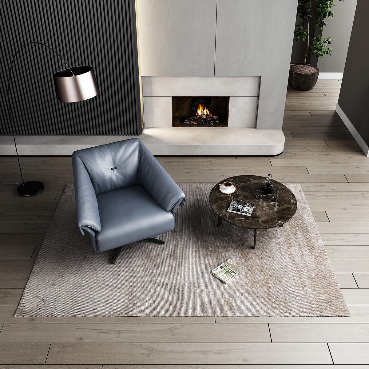 Poltrona Design di lusso Relax Club Lounge Singola Imbottita Tessuto Pelle